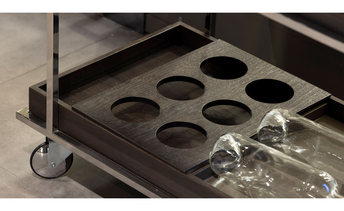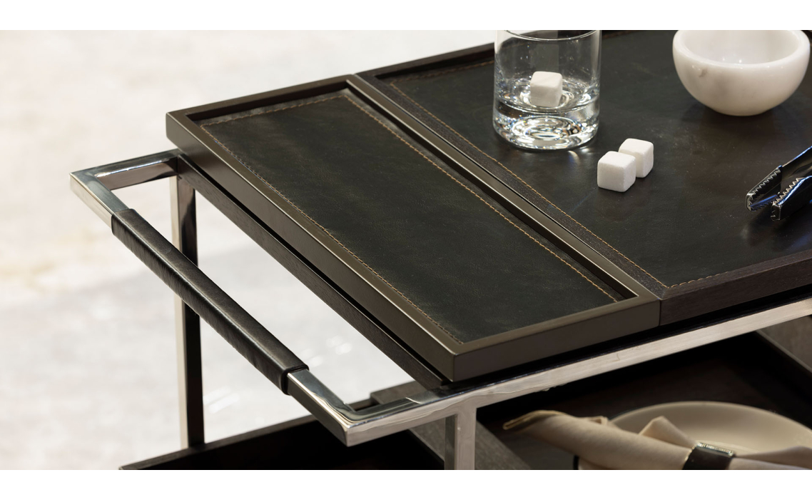 Сервировочная тележка Alfred сочетает безупречную функциональность и эстетическое совершенство. Модель с продуманной организацией пространства позволяет легко транспортировать и элегантно сервировать напитки и угощения.